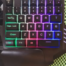 Die ergonomische Form und die bequeme Handballenauflage dieser Halb-Tastatur helfen Gamern, das zu tun, was sie am liebsten tun. Wir haben diese Tastatur mit einer regenbogenfarbigen LED-Hintergrundbeleuchtung ausgestattet, die sie zu einer erstaunlichen Gaming-Tastatur macht.
