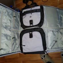 Saco agradável. Totalmente aberto para colocar por exemplo camisas (mínimo de dobra). Lotes de escritórios. Pode ser usado como uma mochila. Acessórios parece decente